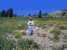 Our next outing was to Powder Mountain Ski Area on July 3. We didn't see many birds (but see Mort try to fly). We did see some Clark's Nutcrackers (named for 1/2 of the Lewis and Clark Exploration Team) and McGillivray's Warblers (named for ?). We also saw many wildflowers. Another beautiful day along the Wasatch mountains. |